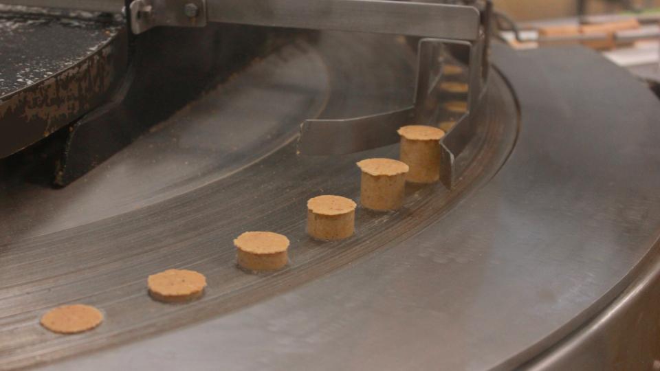 The Santa Helena factory was founded in 1942 by his grandfather, José Marques Telles, and has been in the family ever since. Renato was working in the administrative section of the company when the idea for the new product came out. “At first, it was just for ourselves. We used a little hammer to press the ground peanuts and the sugar together and mold it in the shape of a cork.”